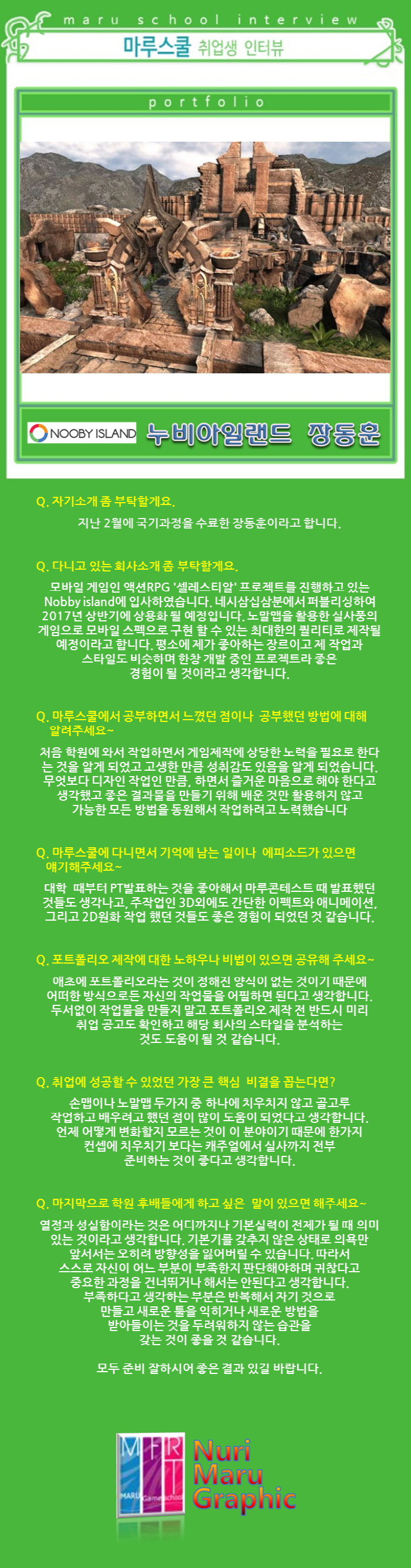마루게임스쿨에서 취업한 교육생의 인터뷰입니다.