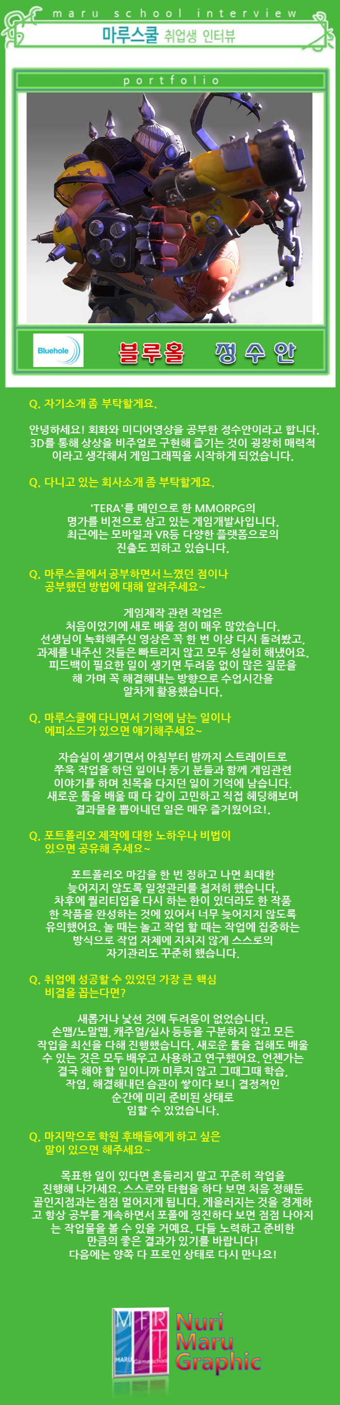 마루게임스쿨에서 취업한 교육생의 인터뷰입니다.