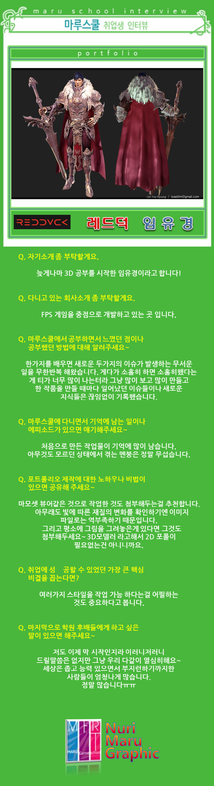 마루게임스쿨에서 취업한 교육생의 인터뷰입니다.